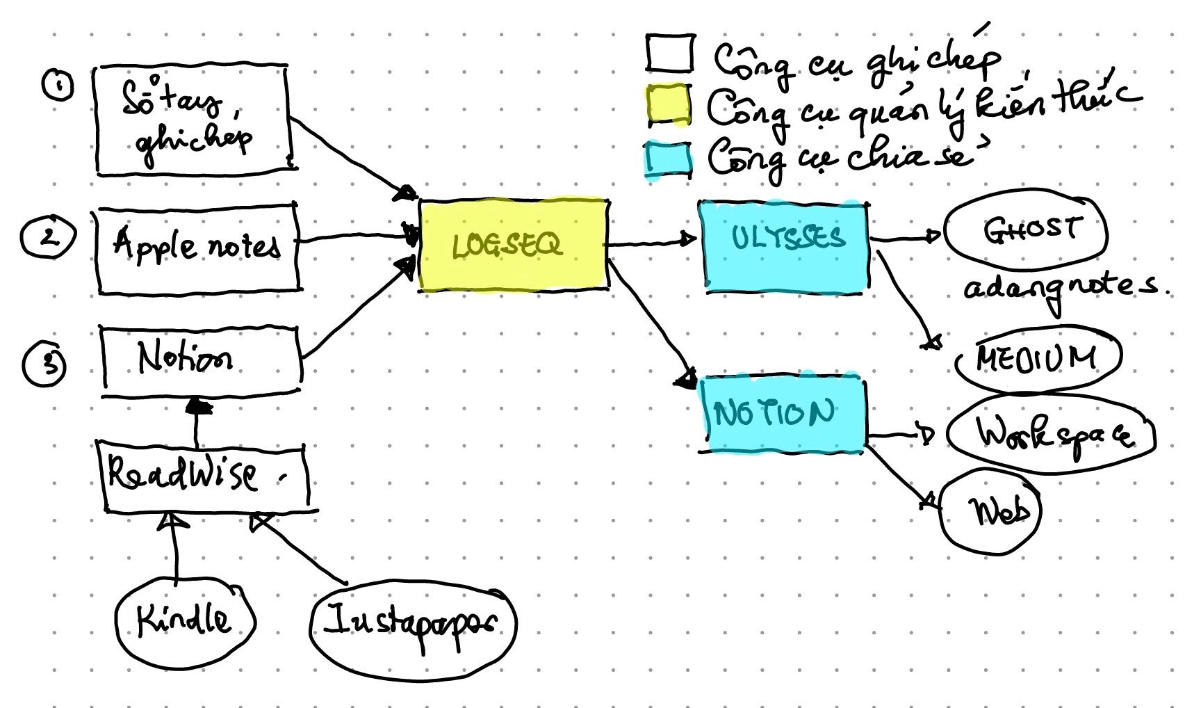 Nhưng vẫn có một phần lớn bị thiếu sót trong “vũ trụ công cụ” của mình, đó là một nền tảng để tập hợp và lưu trữ tập trung các ghi chép và điểm kiến thức nằm rải rác trên 3 công cụ trên.