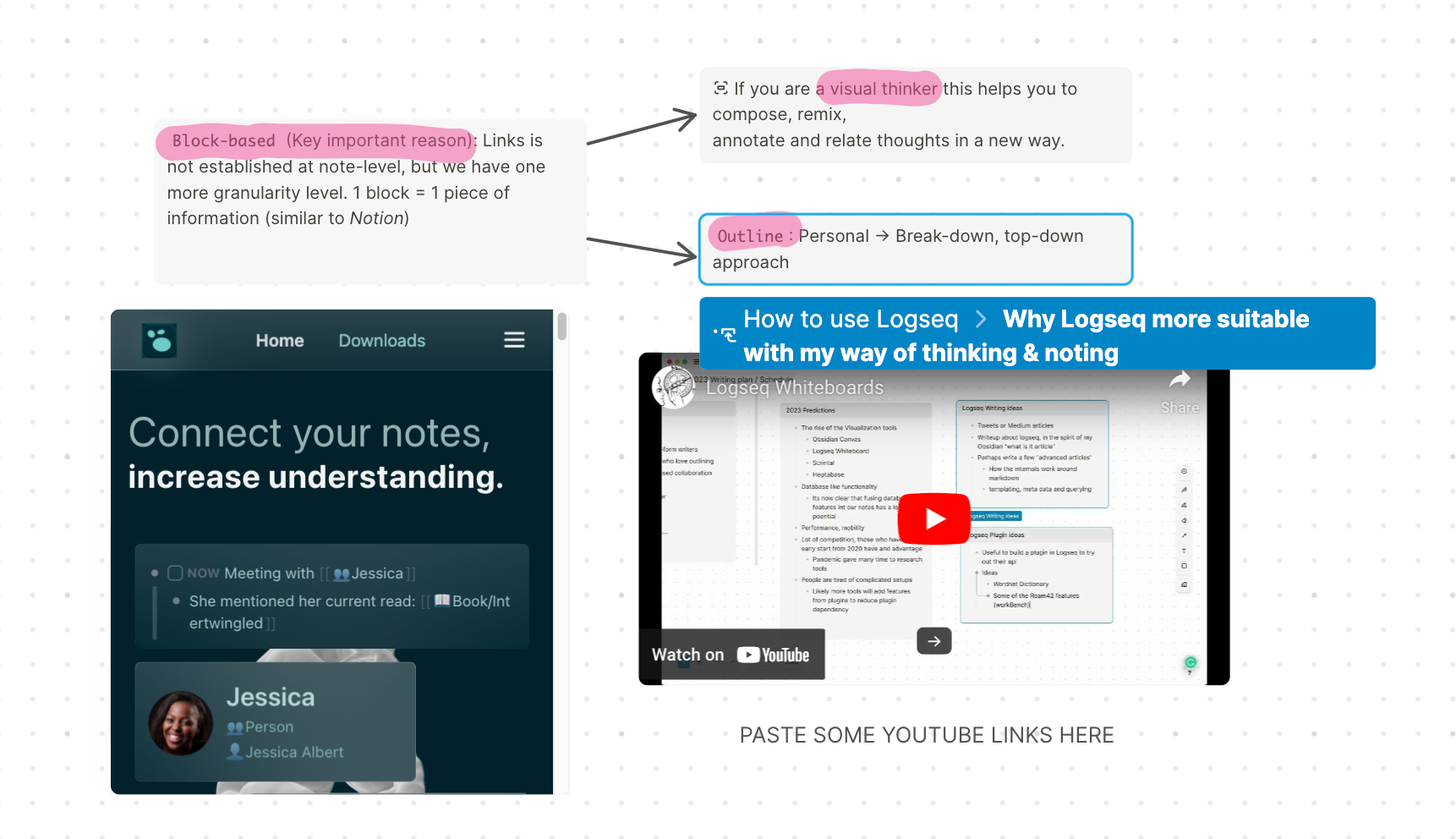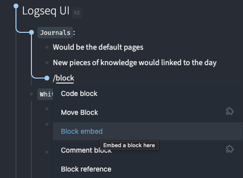 Block trong Logseq giống như các khối Lego có thể sắp xếp và tuỳ chỉnh trên nhiều dàn ý, và chính điều này cho phép một trải nghiệm tích cóp và lắp ráp các điểm thông tin một cách thú vị và hiệu