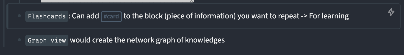 Chỉ cần kèm Hashtag #card trong một Block, bạn sẽ biến Block đó thành Flashcards. Một tính năng thú vị nếu bạn thích cách học và ghi nhớ bằng Flashcard.