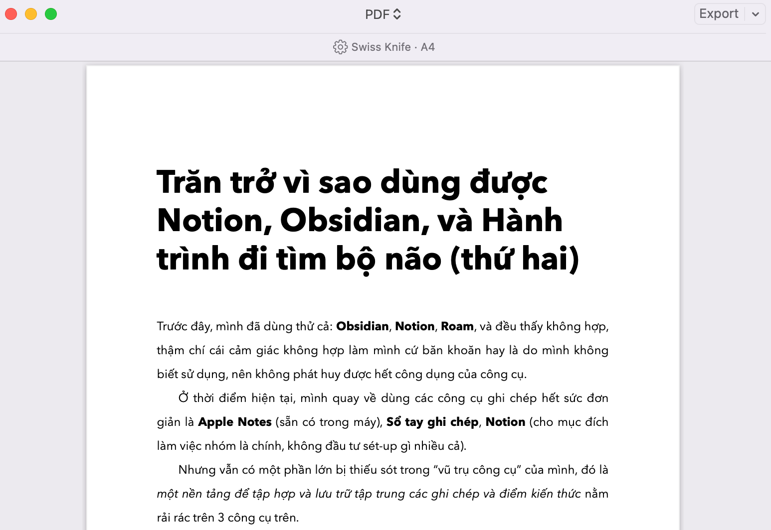 Trước đây, mình đã dùng thử cả: Obsidian và Notion, rồi đều thấy không hợp, thậm chí cái cảm giác không hợp làm mình cứ băn khoăn có phải do mình không biết sử dụng, nên không phát huy được hết công dụng.